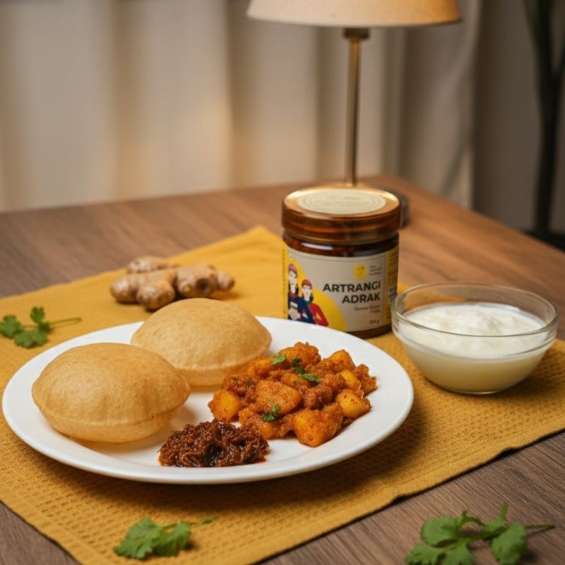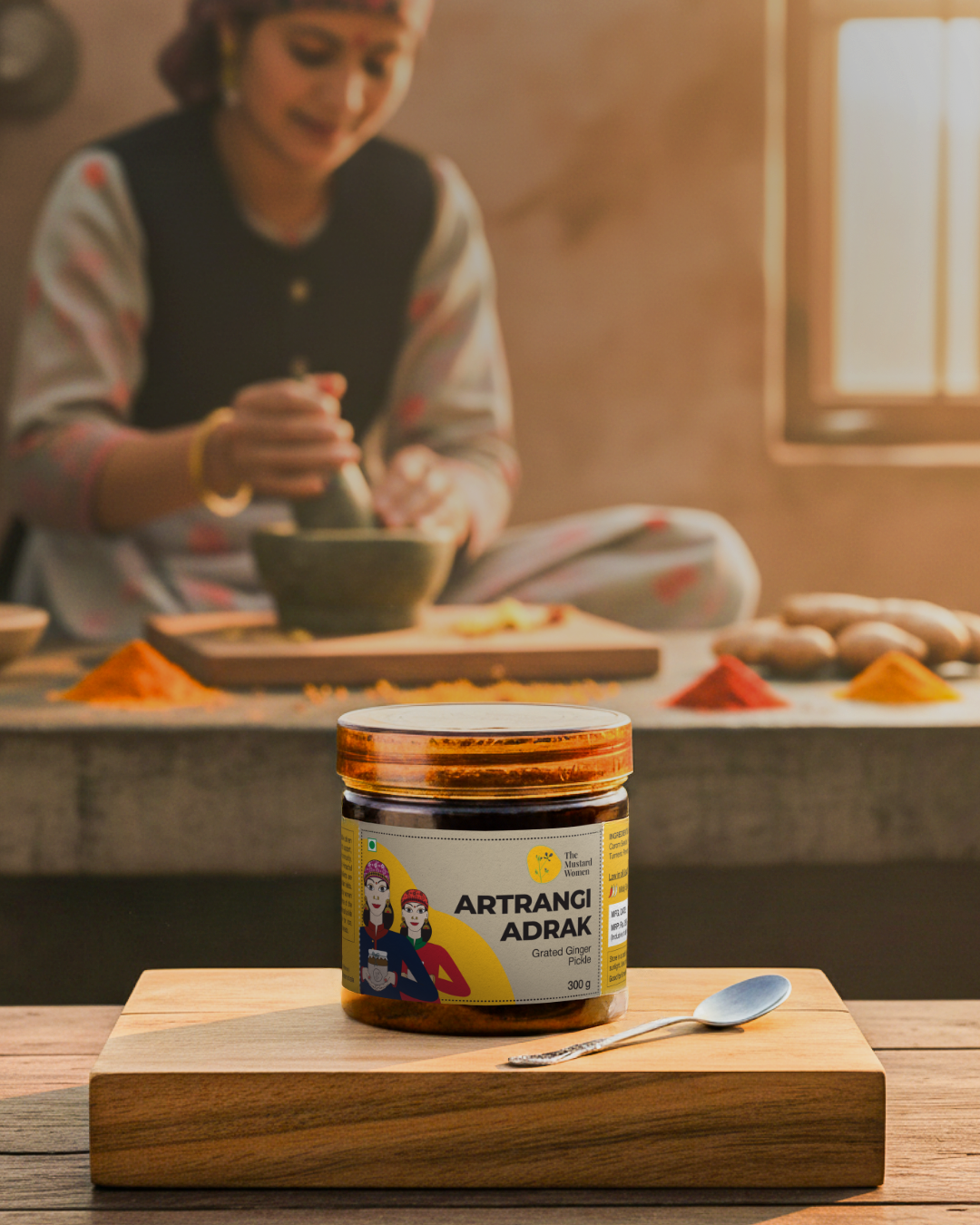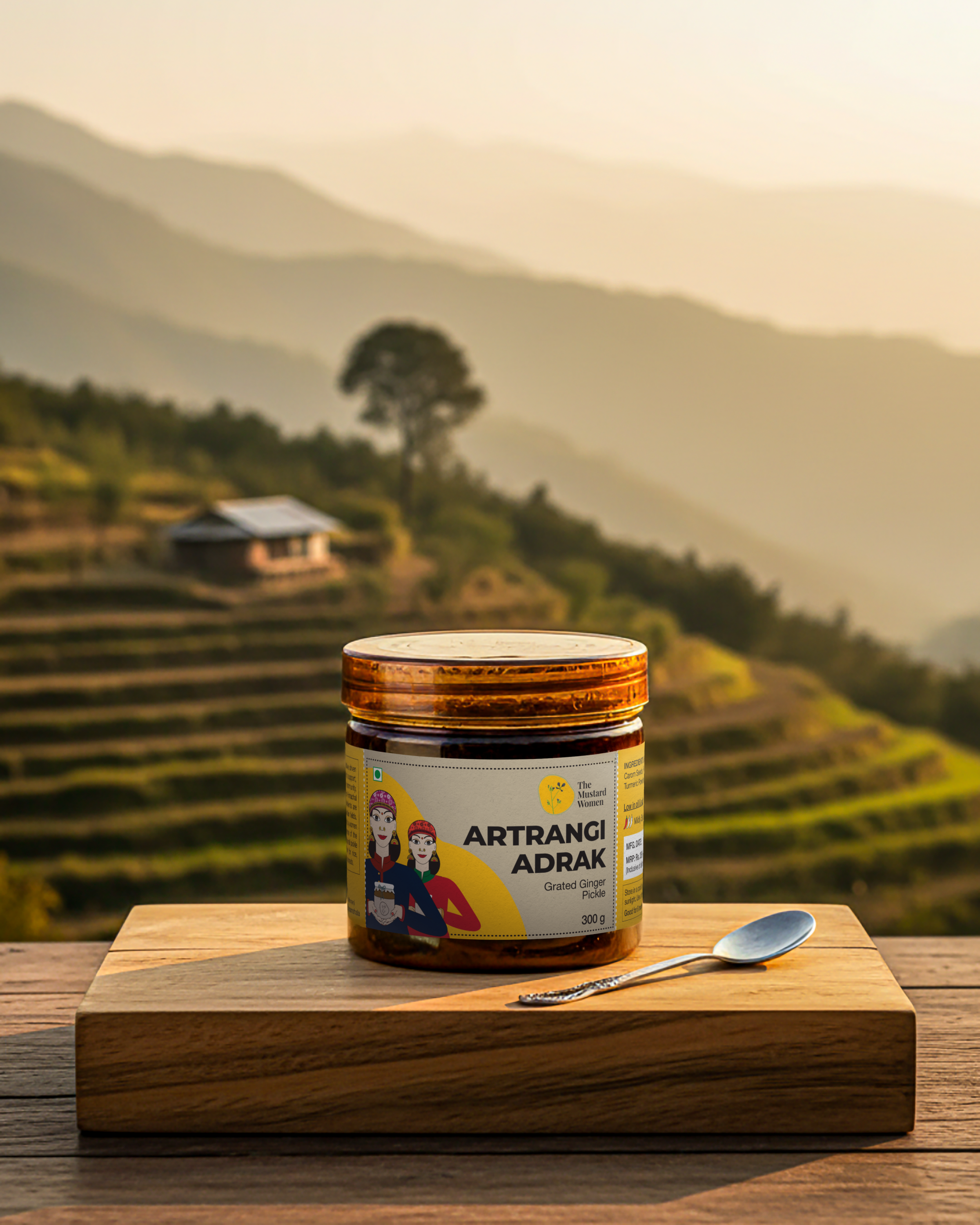 A traditional Himachali recipe, prepared in almost every household of Himachal Pradesh. This pickle is made with freshly grated ginger which offers a unique balance of tangy ginger, and just a hint of sweetness and spice. It is a versatile accompaniment you can enjoy throughout the year, though it is typically enjoyed in the cold winter months for its warming properties and digestive benefits.