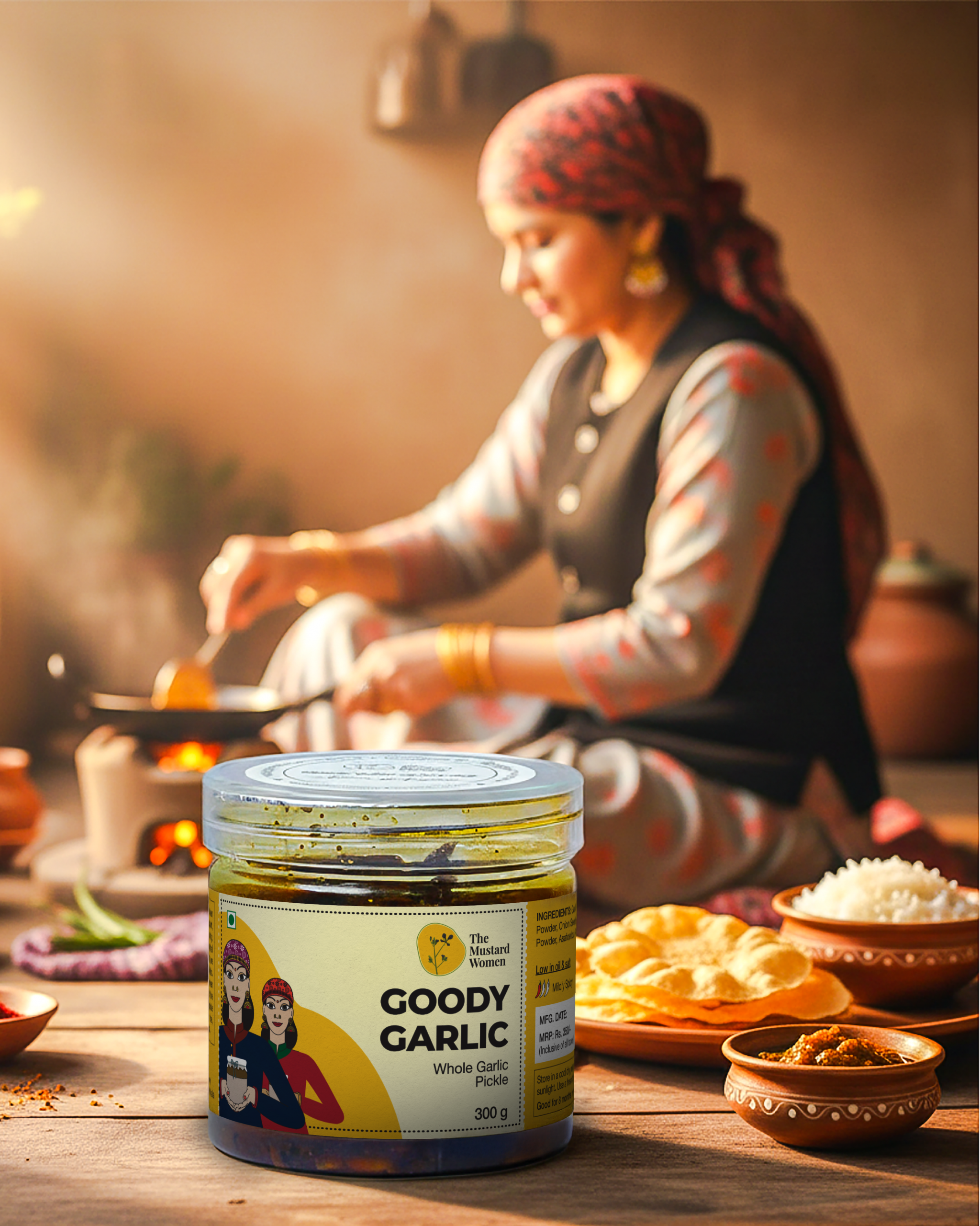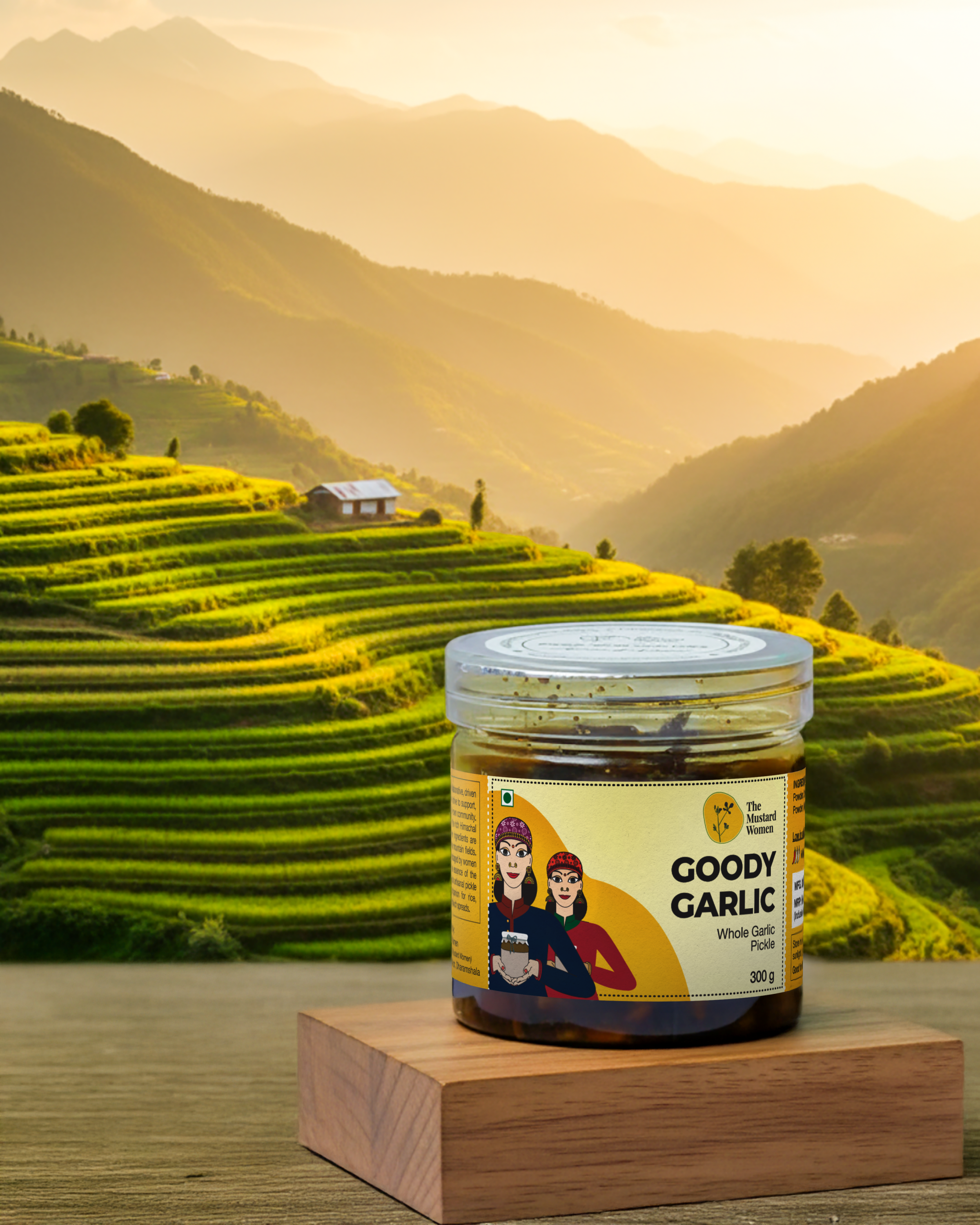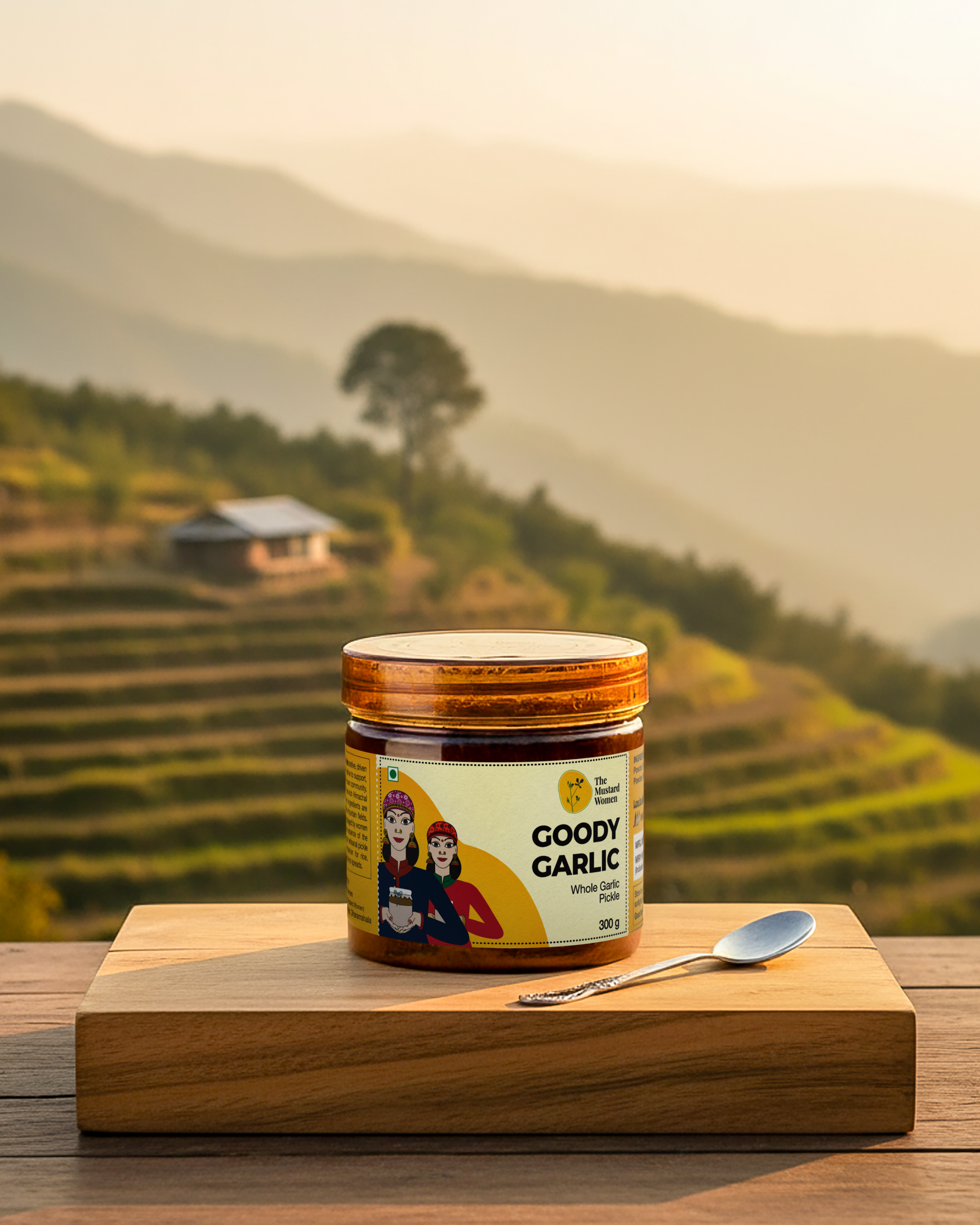 In the heart of Himachal Pradesh, every kitchen has a story, and one of the most cherished is the making of garlic pickle. As winter arrives, families gather to prepare this aromatic delicacy – using freshly peeled garlic cloves, sun-dried spices in age-old recipes passed down through generations. The garlic is slowly infused with mustard oil and traditional Himachali spices, locking in warmth, flavor, and the many health benefits of fresh garlic. The result is a pickle that is more than just food – it is a memory of home, a mother’s loving preparation alongside hot parathas,  and of simple meals elevated by a bold, tangy taste. We bring this same authentic garlic pickle recipe directly to your homes to enjoy the true taste of Himachal wherever you are. Warmth, flavor, tradition, and love permeate this jar of fresh flavors from the mountains.