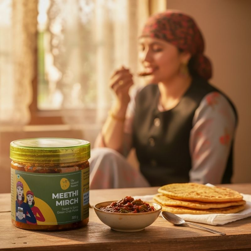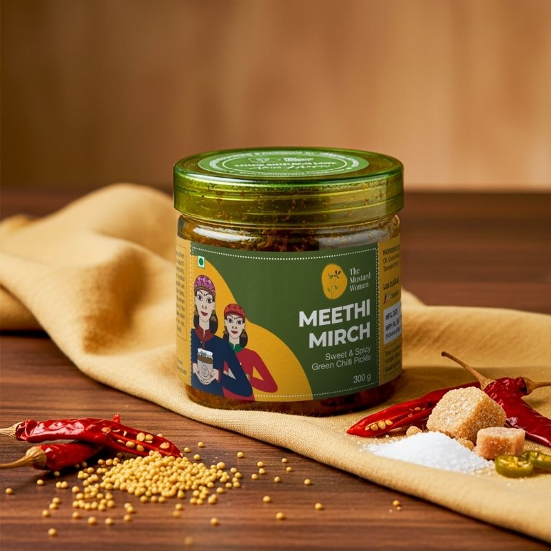 In every Himachali home, pickles are more than a side dish – they are a part of staple in every meal and lovingly prepared with local ingredients using age-old recipes. Among the many varieties, the green chili pickle stands out as a true favorite. Made in the traditional Himachali way, fresh green chillies are finely chopped, sun-dried in the fresh mountain air, and mixed with our unique blend of spices that tantalize in a balance of sweetness and spice. Each jar carries the warmth of local kitchens and the authenticity of homemade flavors that have been cherished for generations. Enjoy our Meethi Mirch with steaming rice, hot chapatis, or any of your hearty meals. It is a bold yet familiar taste which captures the essence of the mountains. Vibrant, comforting, and unforgettable. We offer you this authentic, homemade Himachali green chili pickle to experience traditional flavors loved for years in local homes.
